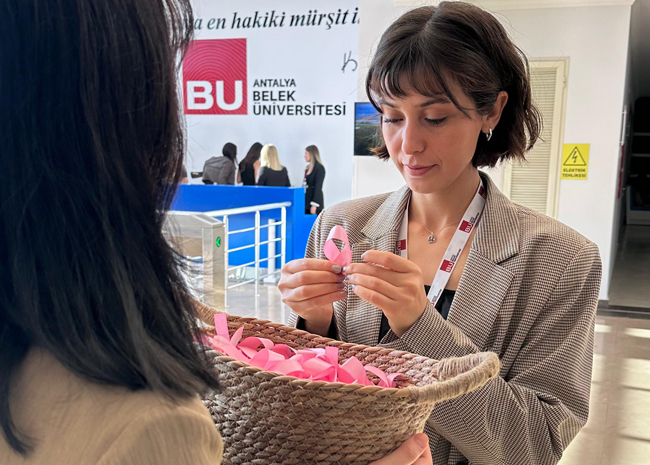 Antalya Belek Üniversitesi Toplumsal Cinsiyet Eşitliği Topluluğu, Ekim ayı “Meme Kanseri Farkındalık Ayı” dolayısıyla farkındalık etkinliği düzenledi. Etkinlikte, akademisyenlere, idari personele ve öğrencilere pembe kurdele dağıtıldı.