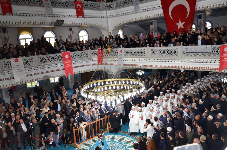Kavaklı Camii’nin üst katlarında kadınlar, alt katta erkekler yer aldı.