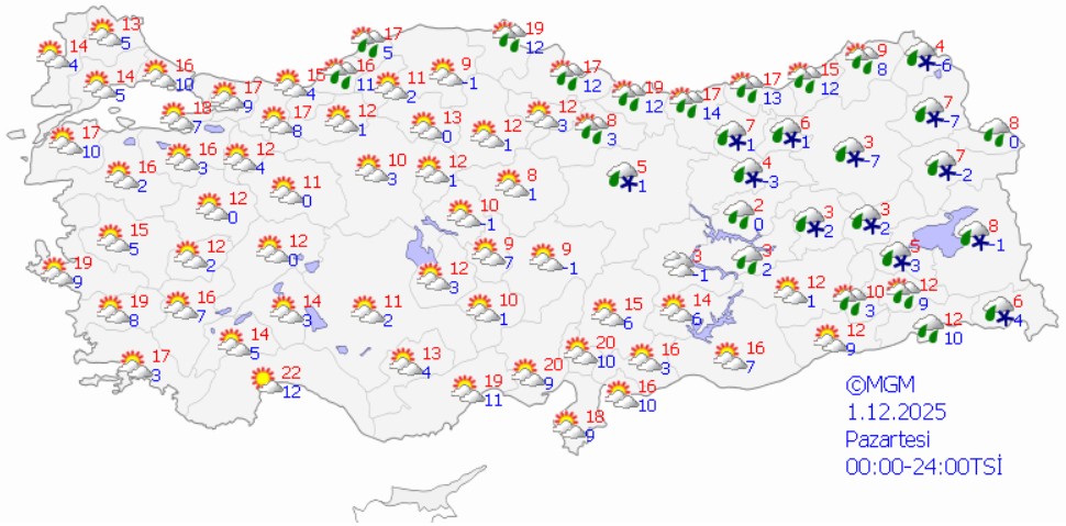 1 Aralık Pazartesi: Hava tamamen kış moduna geçiyor; birçok ilde kar ihtimali sürüyor.