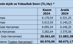 TÜRK-İŞ’e göre dört kişilik bir ailenin açlık sınırı kasım ayında 29.828 TL’ye, yoksulluk sınırı ise 97.159 TL’ye yükseldi. Bekâr bir çalışanın aylık yaşam maliyeti 38.752 TL olarak hesaplandı.
