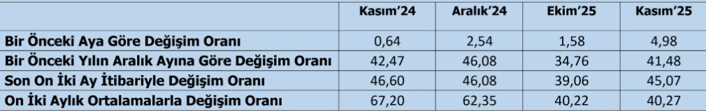 TÜRK-İŞ’in hesaplamasına göre “mutfak enflasyonu”nda kasım ayı itibarıyla şu değişimler yaşandı: