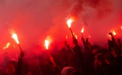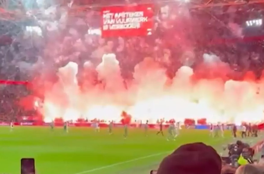 Ajax–Groningen maçında tribünlerde yakılan onlarca meşale ve sahaya atılan havai fişekler büyük paniğe neden oldu. Futbolcular saha dışına kaçarken hakem karşılaşmayı erteleme kararı aldı.