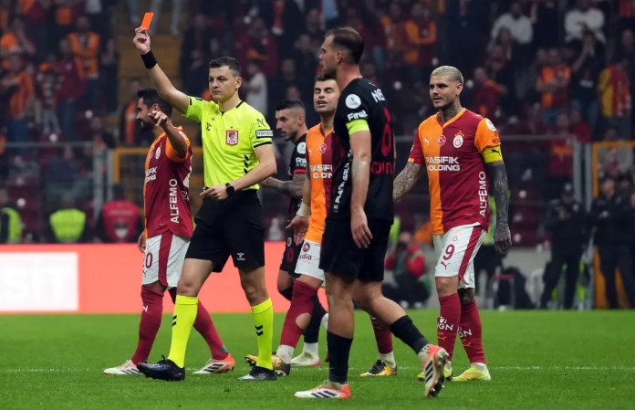 Galatasaray, karşılaşmanın kalan bölümünü 10 kişi tamamlamak zorunda kalmıştı.