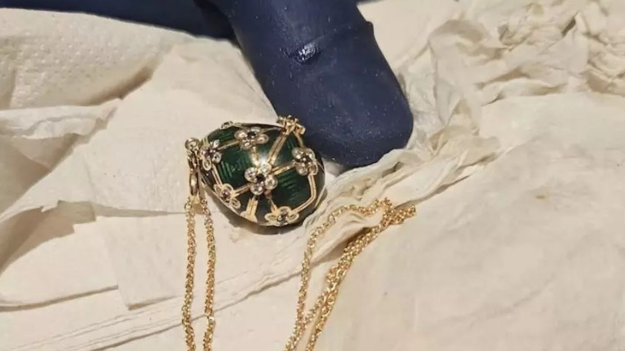 Ele geçirilen kolyenin, sınırlı sayıda üretilen Faberge yumurtası kolyelerinden biri olduğu açıklandı.