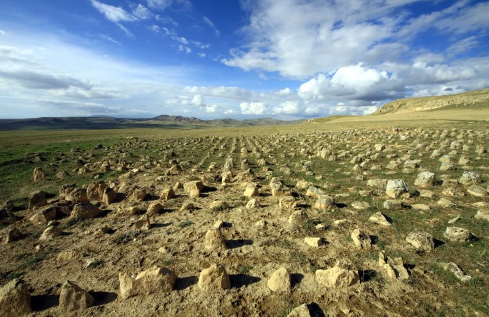 Kalecik Mahallesi’ndeki 1600 metrekarelik arkeolojik alanda 2 bin 475 dikili taş, 25 mezar odası ve taş halkalardan oluşan tarihi düzen büyük ölçüde zarar gördü. Uzmanlar, koruma altına alınmayan bölgenin dünyanın en önemli nekropollerinden biri olabileceğini belirtiyor.