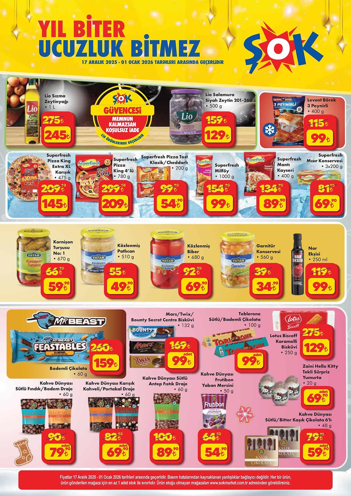17 Aralık 2025 – 1 Ocak 2026 tarihleri arasında geçerli kampanyada yüzlerce üründe büyük yıl sonu indirimi raflarda yerini aldı.