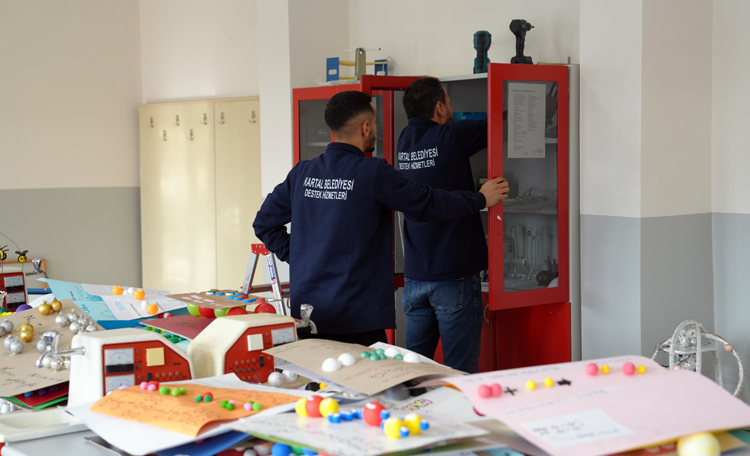 Kartal Belediyesi, deprem anında oluşabilecek riskleri azaltmak amacıyla ilçede bulunan ilkokul, ortaokul ve liseler ile bazı kamu binalarında kapsamlı bir güvenlik çalışmasını hayata geçirdi. Çalışmalar kapsamında; belediyeye bağlı tüm hizmet birimleri, eğitim kurumları ile Kaymakamlık binasında devrilme ve savrulma riski taşıyan eşyaların sabitlenmesine yönelik çalışmalar hayata geçirildi.