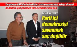 CHP’nin geçmiş dönem Parti Meclisi Üyesi Yıldırım Emsiz ile eski ilçe başkanlarından Muammer Çelebi, 30 eski ilçe başkanının imzasını taşıyan eleştirel bildiri sebebiyle haklarında başlatılan “kesin ihraç” istemli disiplin soruşturmasına basın toplantısıyla tepki gösterdi.