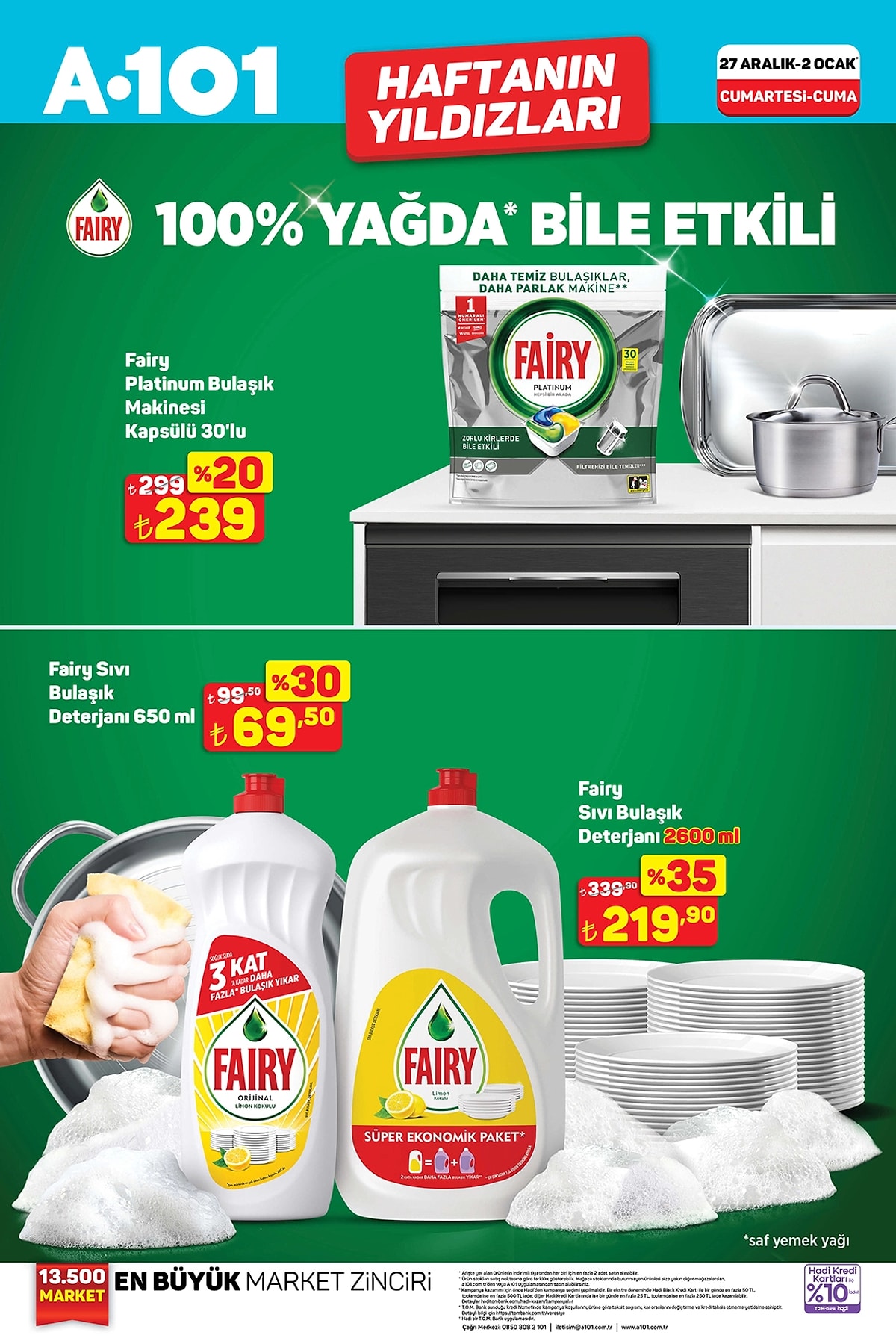 A101, yılın son haftasında “Haftanın Yıldızları” ve “Tazenin Yıldızları” kampanyalarıyla gıda, temizlik ve atıştırmalık ürünlerinde dikkat çeken indirimleri devreye aldı. Haribo, Fairy, Tursil, Yumoş ve birçok temel ürün raflarda indirimli fiyatlarla yerini aldı.