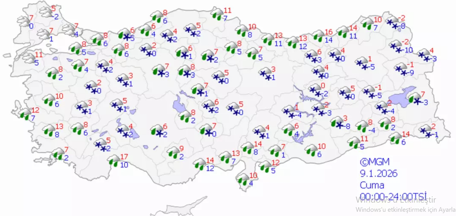 Meteoroloji’nin cuma günü için yayımladığı haritalı tahminlere göre 50 ilde kar yağışı bekleniyor. Kar beklenen iller arasında şunlar yer alıyor: