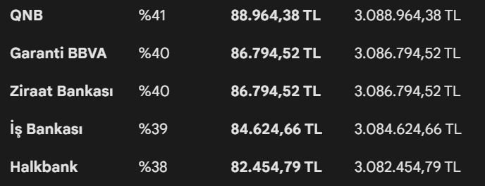 Güncel verilere göre pazardaki en iddialı oranlar %44 ve %45 seviyelerinde yoğunlaşıyor. 3 milyon TL ana parası olan bir vatandaş, seçtiği bankaya göre ayda ortalama bir otomobil taksiti veya lüks bir kira bedeli kadar ek gelir sağlayabiliyor.
