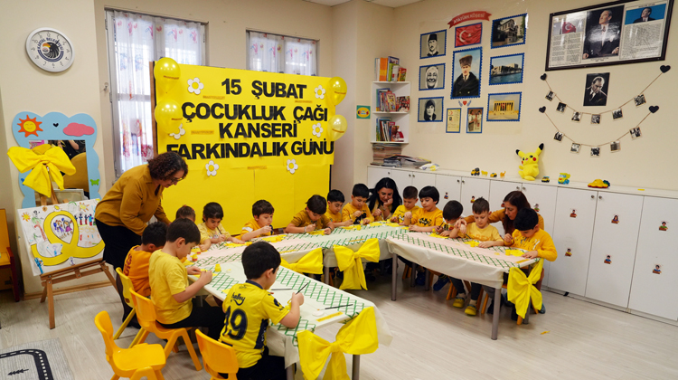 Uluslararası Çocukluk Çağı Kanserleri Günü olan 15 Şubat dolayısıyla düzenlenen programda, çocuklara yönelik farkındalık çalışmaları gerçekleştirildi. Erken evrede teşhis edilen çocukluk kanserlerinin önemine dikkat çekilen etkinlikte, sarı renk teması ön plana çıkarıldı. Çocukluk çağı kanseri farkındalığında sarı rengin umut, iyimserlik ve mutluluğu temsil etmesi nedeniyle etkinlik alanı sarı süslemelerle donatıldı. Minikler de sarı tonlarının ağırlıkta olduğu etkinlik materyalleriyle çalışmalarını gerçekleştirdi. Seramik papatya boyama etkinliği yapan çocuklar hem farkındalık çalışmalarına katıldı, hem de el becerilerine katkı sağladı.